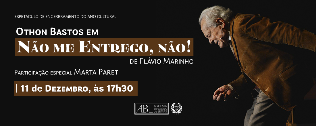 A ABL encerra seu ano cultural com o monólogo de Othon Bastos “Não me entrego, não!”, na quinta-feira, 11 de dezembro, às 17h30. A entrada é franca e haverá distribuição de senhas a partir das 16h30.